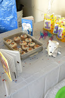 Because of the theme, we got him a lot of Eric Carle books and toys for his birthday, and we used them as decoration and entertainment at the party.